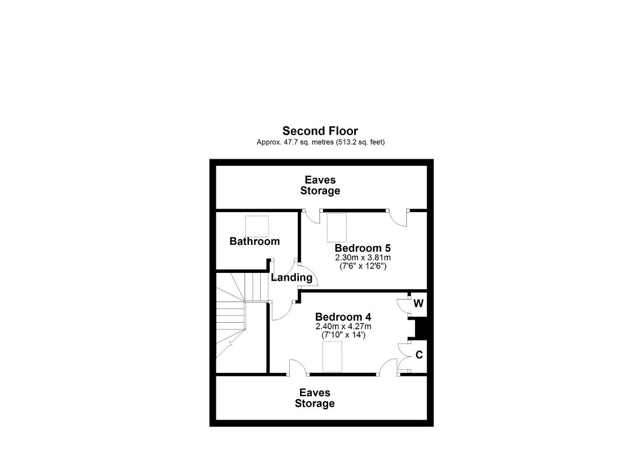 Bedroom 5 - 7' 6'' x 12' 5'' (2.3m x 3.81m) Velux window to the rear. Storage into the eaves space. Radiator and fitted carpet.