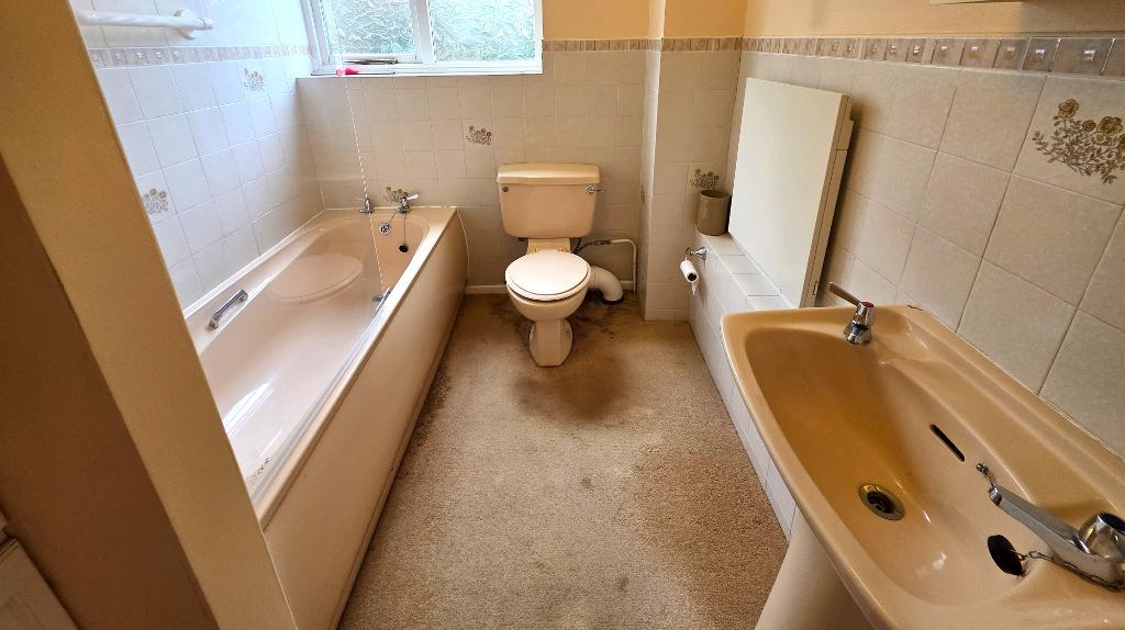 Bathroom - Fitted with a panelled bath with an electric shower over and a glass screen, a wash basin and a WC. Double glazed window to the side. Built in cupboard with shelving.