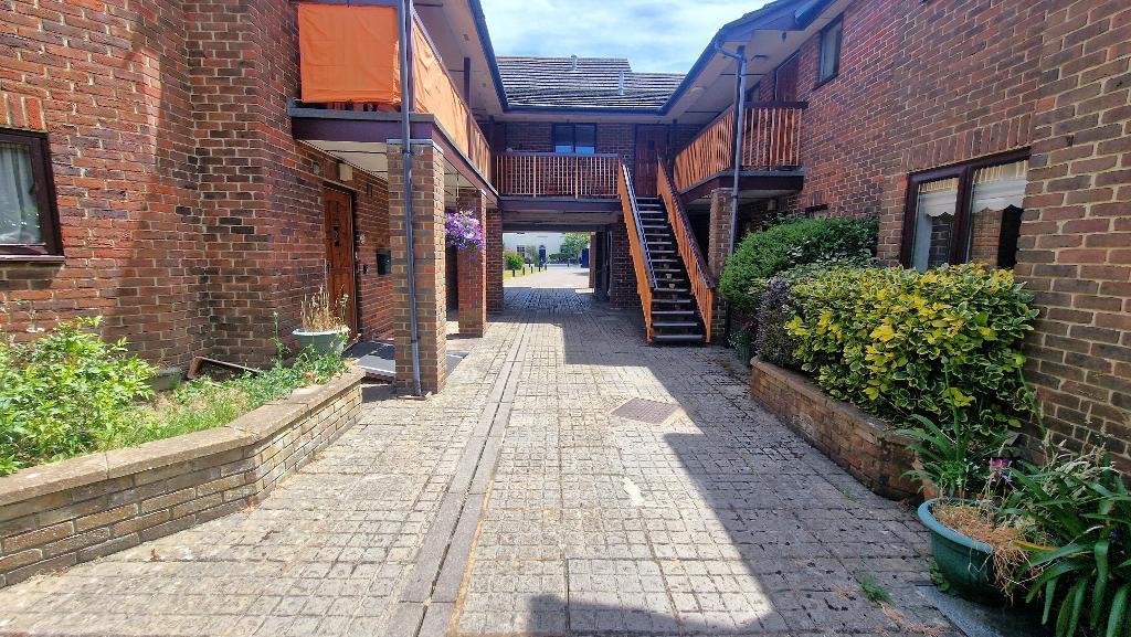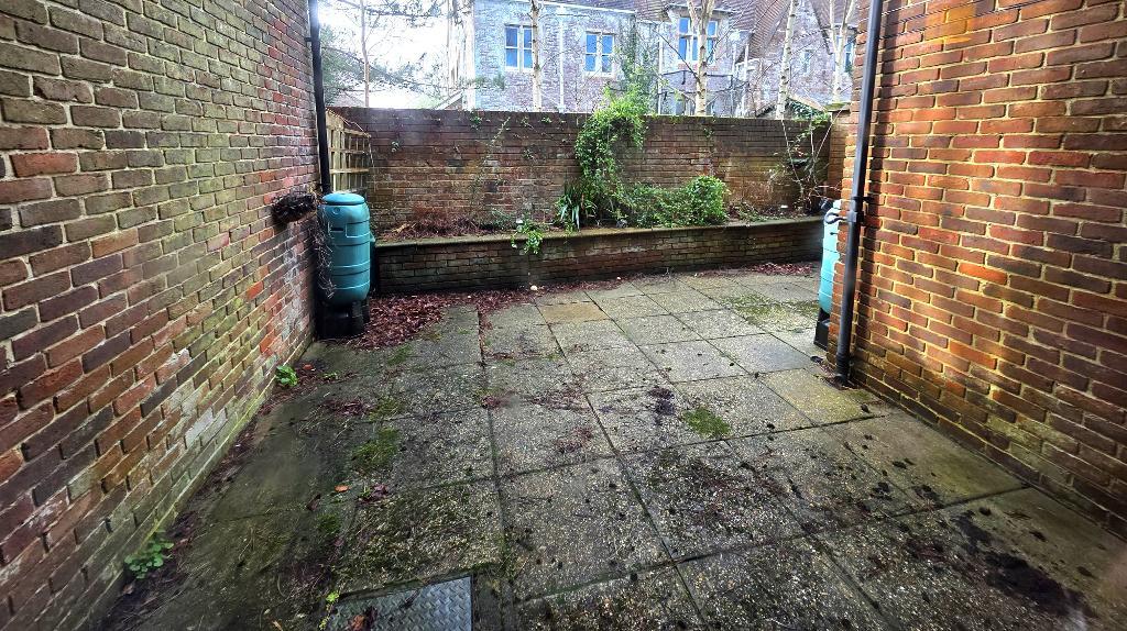 The apartment benefits from a private courtyard area which is paved and has raised flower beds and a timber shed.