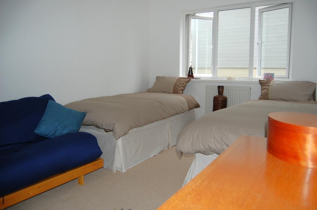 Bedroom 1 - 13' 1'' x 16' 1'' (4m x 4.91m) A large double room with double glazed French doors to the front leading out onto a balcony, from where there are views of the harbour and across to St Helens. Vaulted ceiling, TV point, telephone point, radiator and fitted carpet.