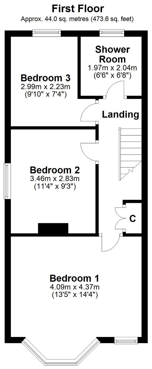 Bedroom 1 - 13' 5'' x 14' 4'' (4.09m x 4.37m) A double bedroom with a walk in double glazed bay window and further window to the front with views down towards the harbour. 2 radiators and fitted carpet.