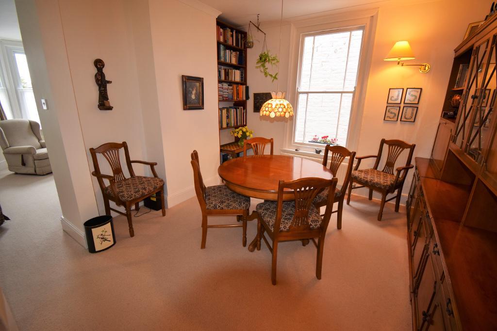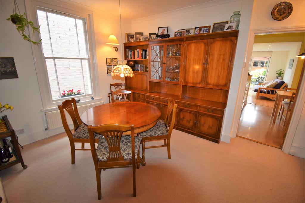 Dining Room - 11' 5'' x 14' 4'' (3.48m x 4.37m) Sash window to the side and a built in display unit with shelving and cupboards. Stairs to the first floor, radiator and fitted carpet.