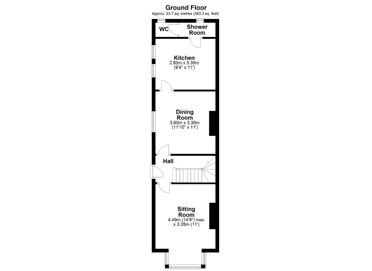 The house requires modernisation throughout, and has accommodation which on the ground floor comprises entrance hall, a sitting room to the front with a bay window, dining room, a kitchen to the rear and a shower room. This is complemented by a landing, 2 double bedrooms and a bathroom on the first floor, plus an additional room which can be utilised as a study.