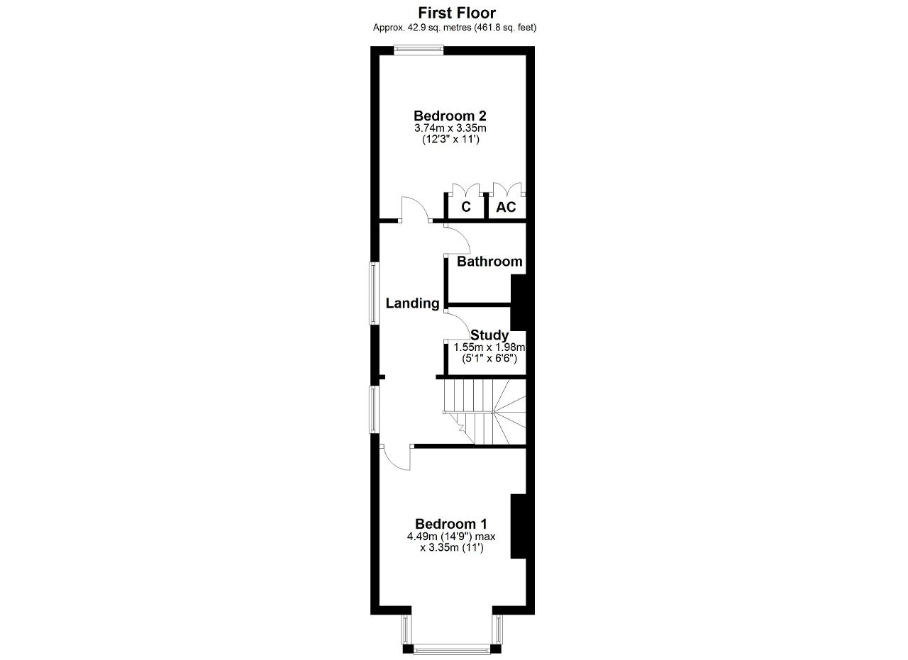 Bedroom 1 - 14' 8'' x 10' 11'' (4.49m x 3.35m) A double bedroom with a double glazed box bay window to the front. Fitted carpet.