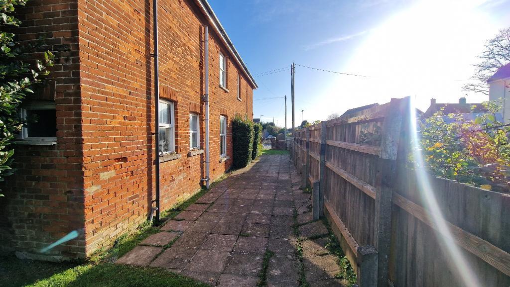 The side garden is paved, whilst the rear garden is fenced and laid to lawn.