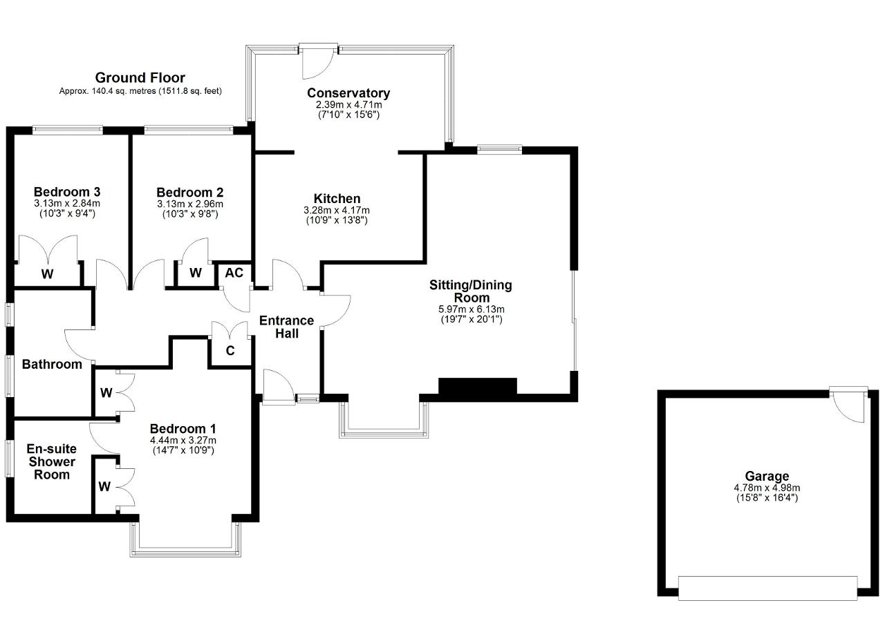 The bungalow has been beautifully cared for over the years, both internally and externally, and offers well arranged, spacious accommodation throughout. A welcoming entrance hall leads through to an open plan sitting room and dining room which enjoys a triple aspect and opens out into the garden. This is complemented by a large open plan kitchen and conservatory area which also opens up into the garden and incorporates a utility area, 3 double bedrooms, a family bathroom and an en-suite shower room.