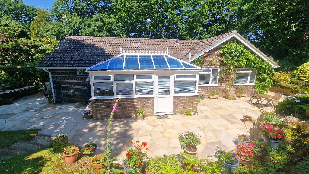 Gated side access leads through to an enclosed rear garden which incorporates various seating areas and outbuildings. A paved patio area leads out from the conservatory and sitting room and wraps around to the side of the bungalow. This provides the perfect spot for outside dining, either enjoying the sunshine or finding shade under the pergola. The lawned garden is interspersed with trees and mature planted flower beds and borders, which incorporates a delightful waterfall feature and pond.