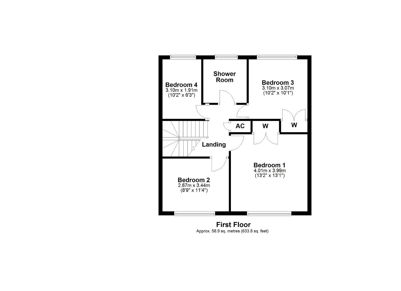 Bedroom 4 - 10' 2'' x 6' 3'' (3.1m x 1.91m) A single bedroom with a double glazed window to the rear. Radiator and fitted carpet.