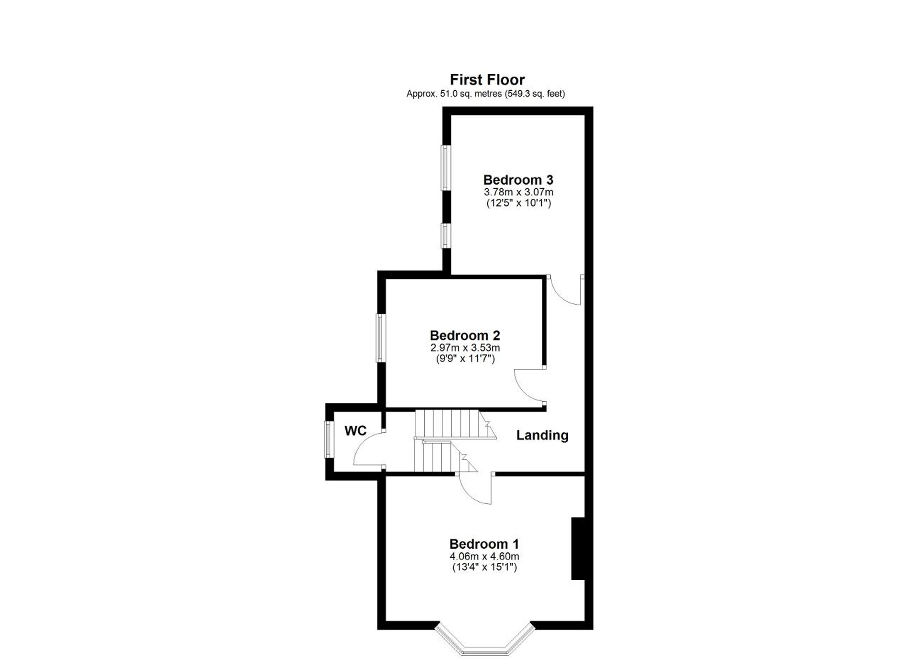 Bedroom 1 - 13' 3'' x 15' 1'' (4.06m x 4.6m) A double bedroom with a double glazed bay window to the front, overlooking the village green. Radiator and fitted carpet.