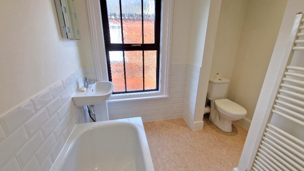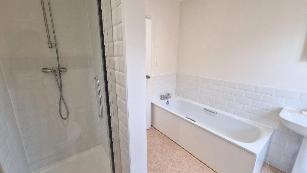 Shower Room - Fitted with a suite comprising panelled bath, a shower cubicle, a wash basin and a WC. Double glazed window to the side. Heated towel rail, half height tiled walls and vinyl flooring.