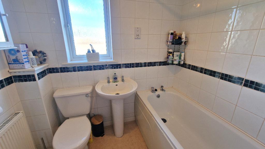 Bathroom - Fitted with a panelled bath with an electric shower over, a wash basin and a WC. Obscured double glazed window to the front. Extractor fan, tiled walls and vinyl flooring.