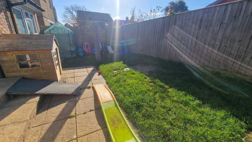 Gated side access leads through to an enclosed garden which has a paved patio area leading out from the sitting room and onto a lawn. Outside lights.