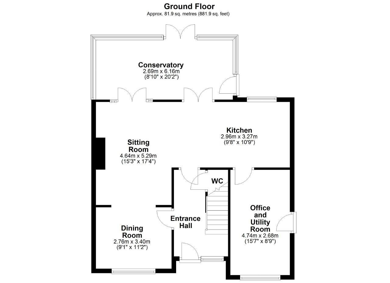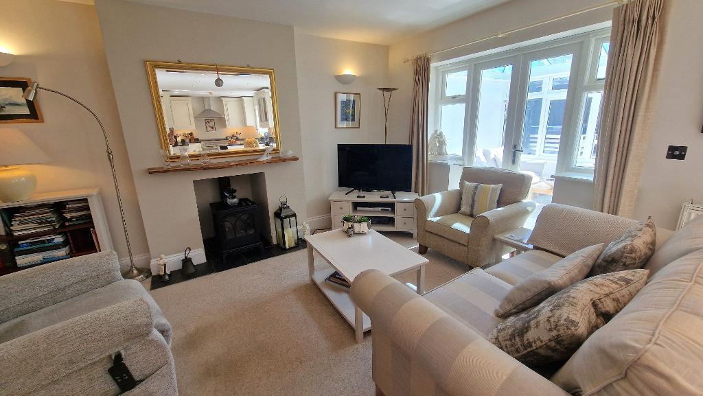 Sitting Room - 15' 2'' x 17' 4'' (4.64m x 5.29m) Feature fireplace with a slate hearth and a wooden mantlepiece. 2 pairs of double glazed French doors lead into the conservatory and provide a lot of natural light. TV point, telephone point, radiator and fitted carpet.