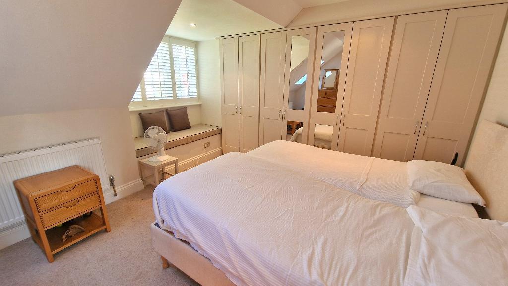 Bedroom 1 - 12' 6'' x 13' 9'' (3.83m x 4.22m) A double bedroom with a double glazed window to the front with a fitted window seat, and a Velux window. Built in wardrobes, radiator and fitted carpet.
