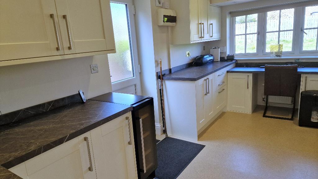 Utility Room / Office - 15' 6'' x 8' 9'' (4.74m x 2.68m) A useful additional room which accommodates both an office area and a utility area. Fitted with a range of wall and floor units with work surfaces over and matching upstands. Tall larder style cupboard. Plumbing for a washing machine, space for a fridge freezer and space for a wine fridge. Built in desk. Double glazed window to the front and door to the side. Extractor fan, heated towel rail and vinyl flooring.
