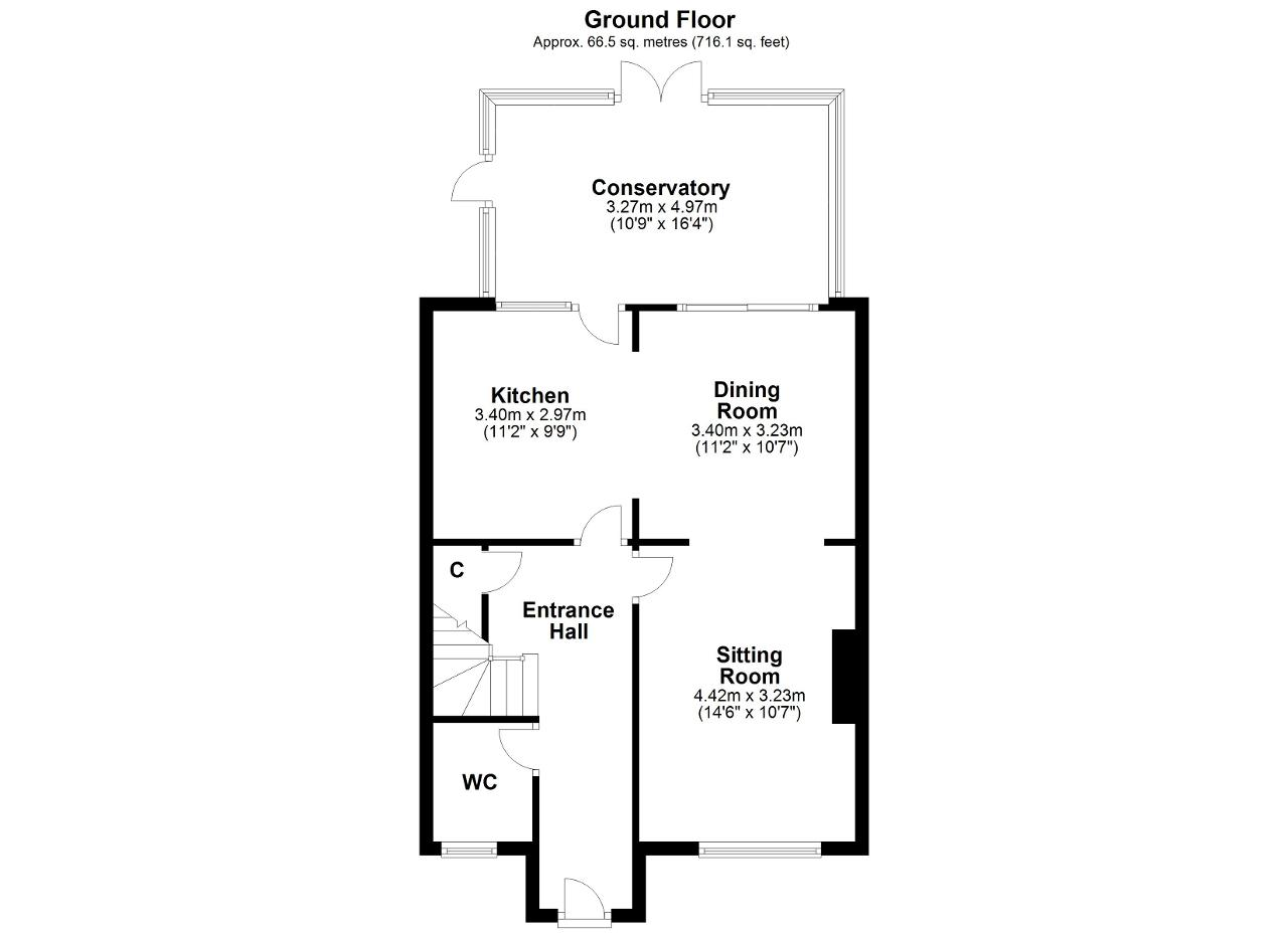 Conservatory - 10' 8'' x 16' 3'' (3.27m x 4.97m) Double glazed construction with a polycarbonate roof, French doors to the garden and a door to the side. Fitted carpet and under floor heating.
