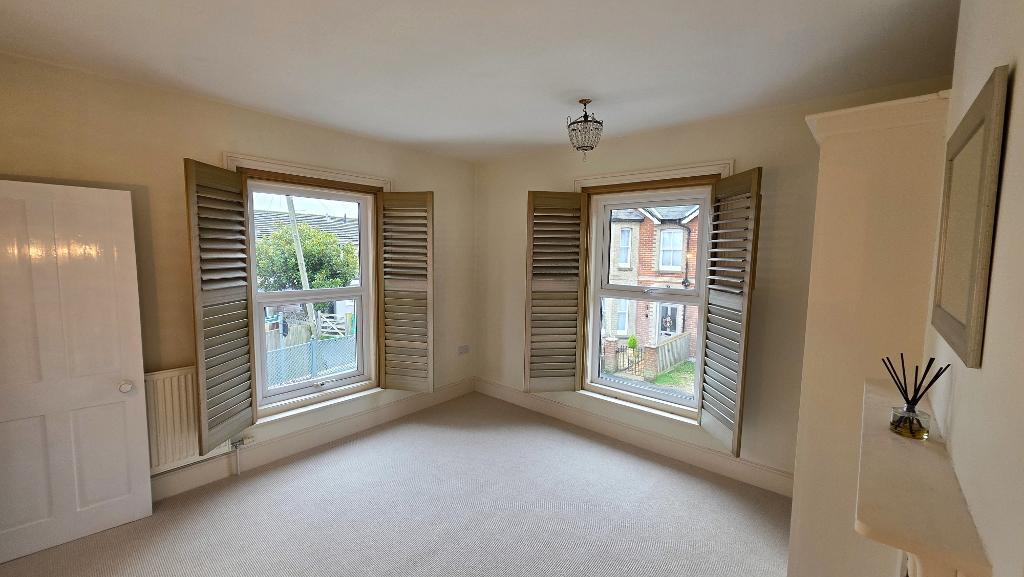 Bedroom 2 - 11' 8'' x 10' 9'' (3.58m x 3.29m) A double bedroom with the original feature fireplace and a wardrobe built into the chimney breast recess. Double glazed windows to the front and side, both fitted with wooden slatted shutters. Over stairs storage cupboard and access to the loft space. Radiator.