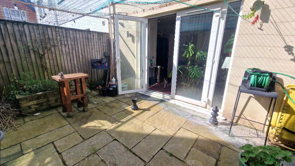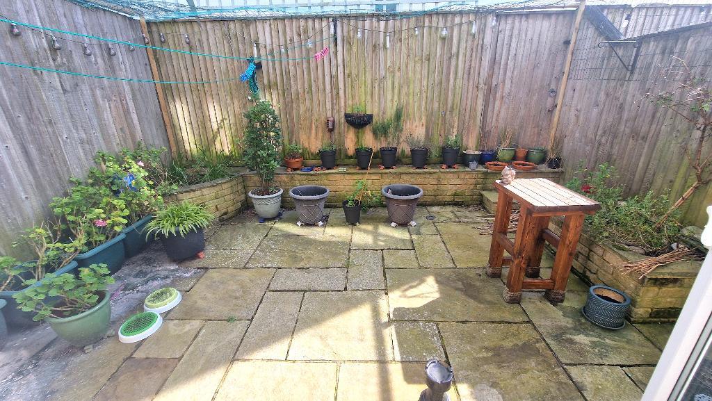 Outside - French doors from the kitchen diner lead out into a southerly aspect rear garden. The garden has been paved for ease of maintenance, making it the perfect spot for outside dining, and incorporates raised flower beds.