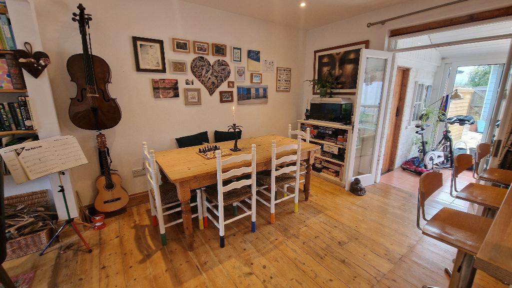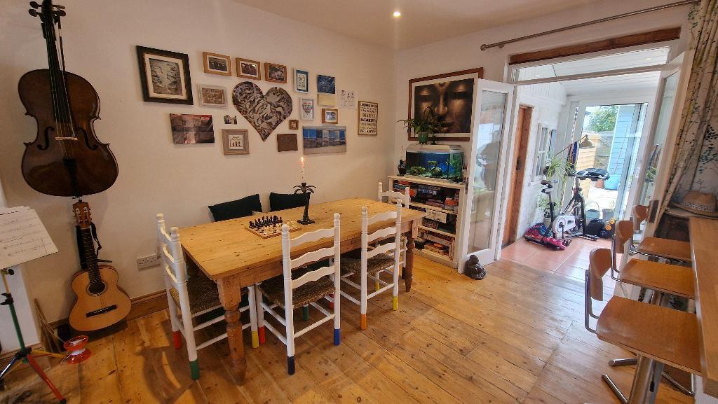 Dining Room - 12' 0'' x 10' 9'' (3.67m x 3.3m) French doors to the rear giving access into the conservatory. Radiator and stripped wooden floorboards.