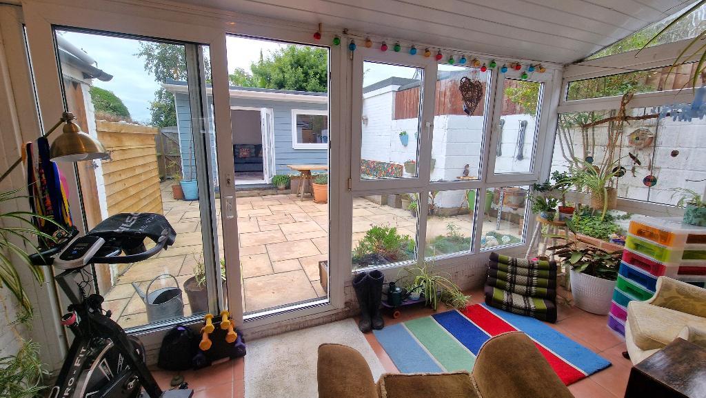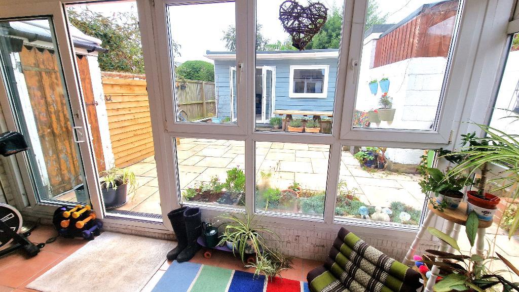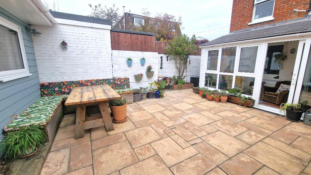 Outside - Access from the conservatory leads out to an enclosed rear garden which has been paved for ease of maintenance and incorporates a built in seating area. Wooden bike store, wooden lean-to storage shed with front and back access, and former outside WC which is now used as a store room. Gated rear access out onto Daishs Lane. Outside tap.