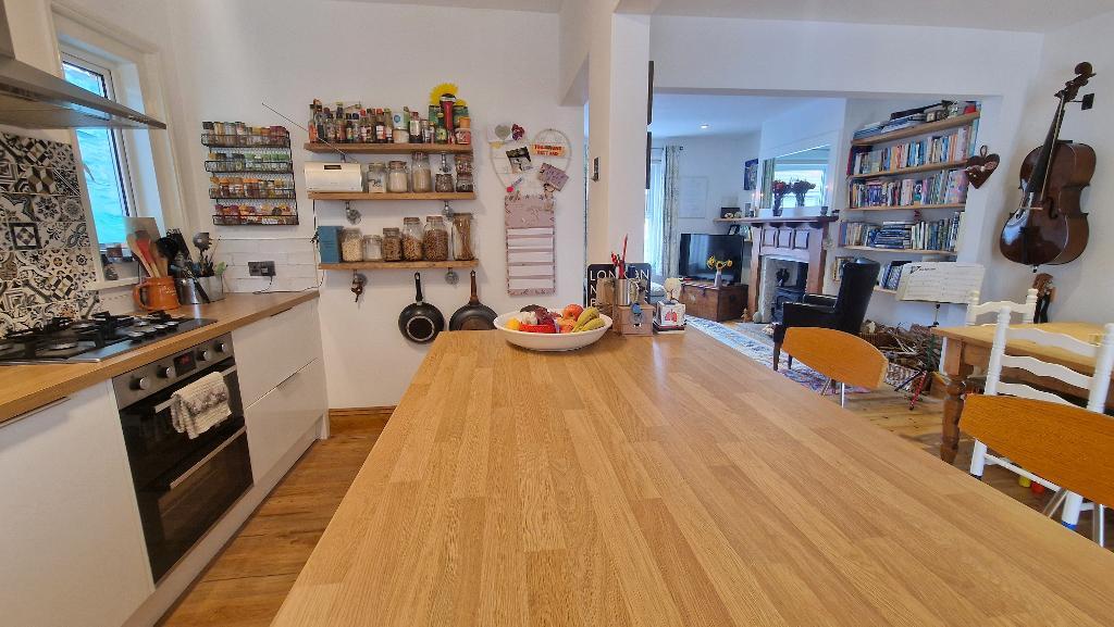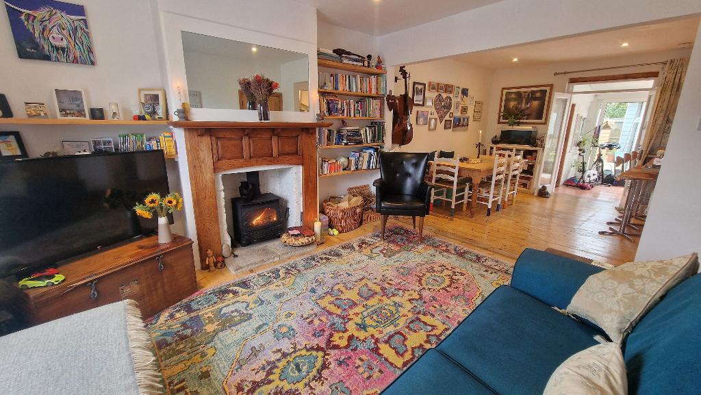 The house offers naturally bright, well proportioned accommodation, which is beautifully presented throughout. On the ground floor this comprises entrance hall, a wonderful open plan living area consisting sitting room with a fitted log burning stove, a dining room and a modern fitted kitchen, a conservatory with access into the rear garden and a utility room/WC. This is complemented on the first floor by 2 double bedrooms, 1 single bedroom and a bathroom which is fitted with both a bath and a shower cubicle.