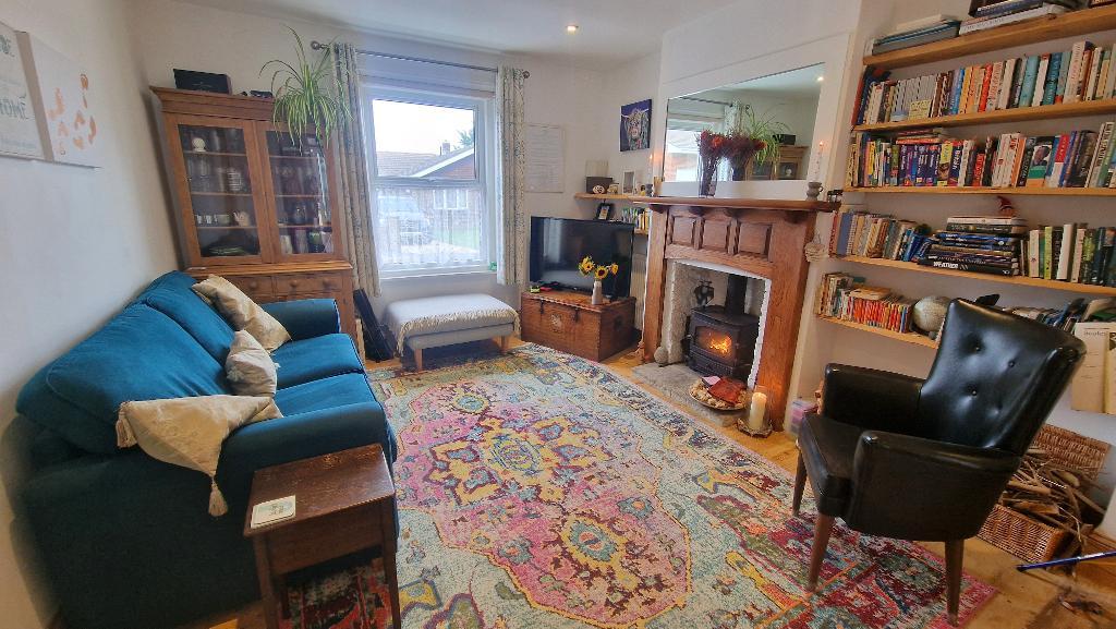 Sitting Room - 12' 11'' x 11' 8'' (3.96m x 3.58m) Fitted log burning stove with a wooden mantle over. Double glazed window to the front, radiator and stripped wooden floorboards.