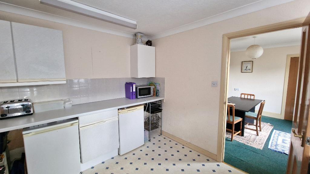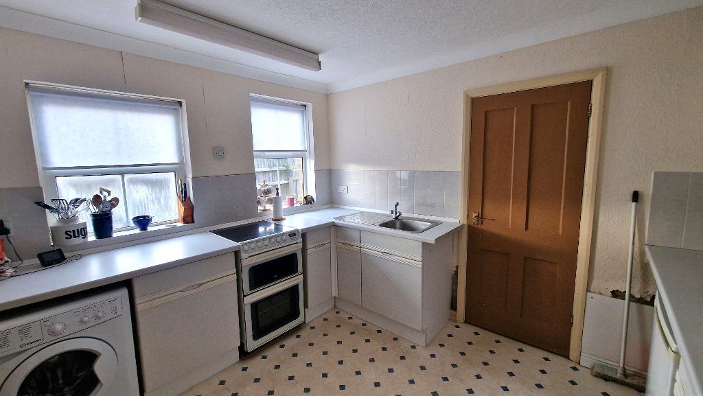 Kitchen - 9' 3'' x 10' 11'' (2.83m x 3.35m) Fitted with a range of wall and floor units with work surfaces over, an inset sink unit and tiled surrounds. Space for a cooker. Plumbing for a washing machine and space for an under counter fridge and freezer. 2 double glazed windows to the side. Vinyl flooring. Door to: