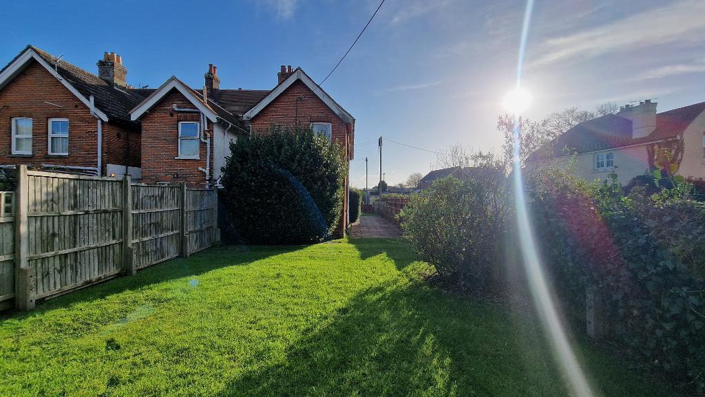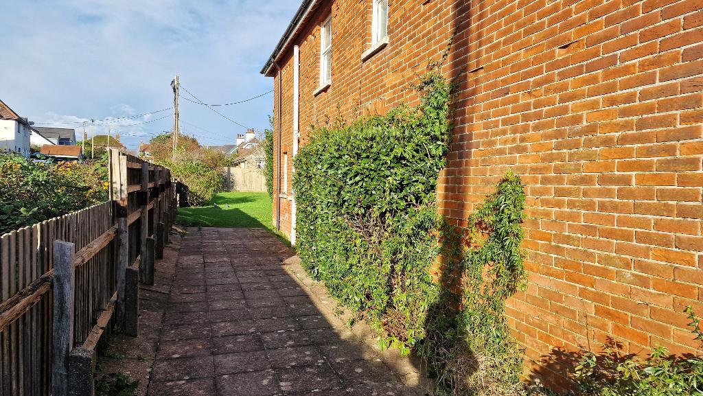 The side garden is paved, whilst the rear garden is fenced and laid to lawn.