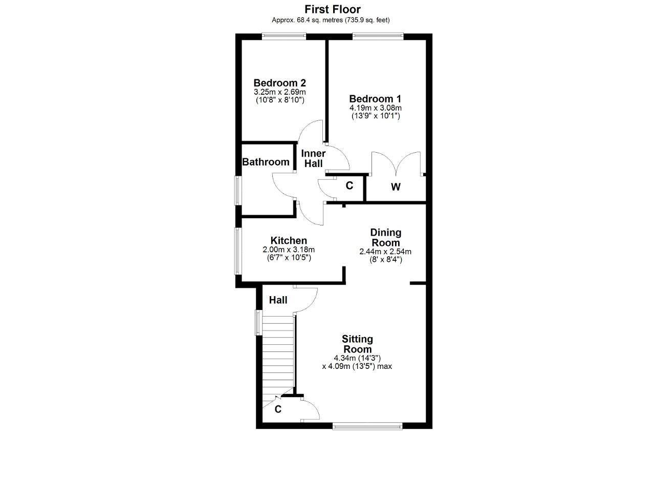 Positioned on the first floor of the building, the apartment benefits from its own private entrance and good sized, well arranged accommodation. This comprises entrance hall with a built in storage cupboard, a front aspect sitting room which leads through to a dining room and a kitchen, and an inner hallway which gives access to 2 double bedrooms and a shower room.