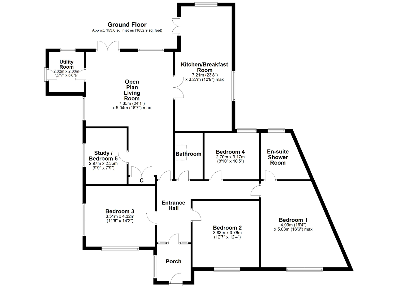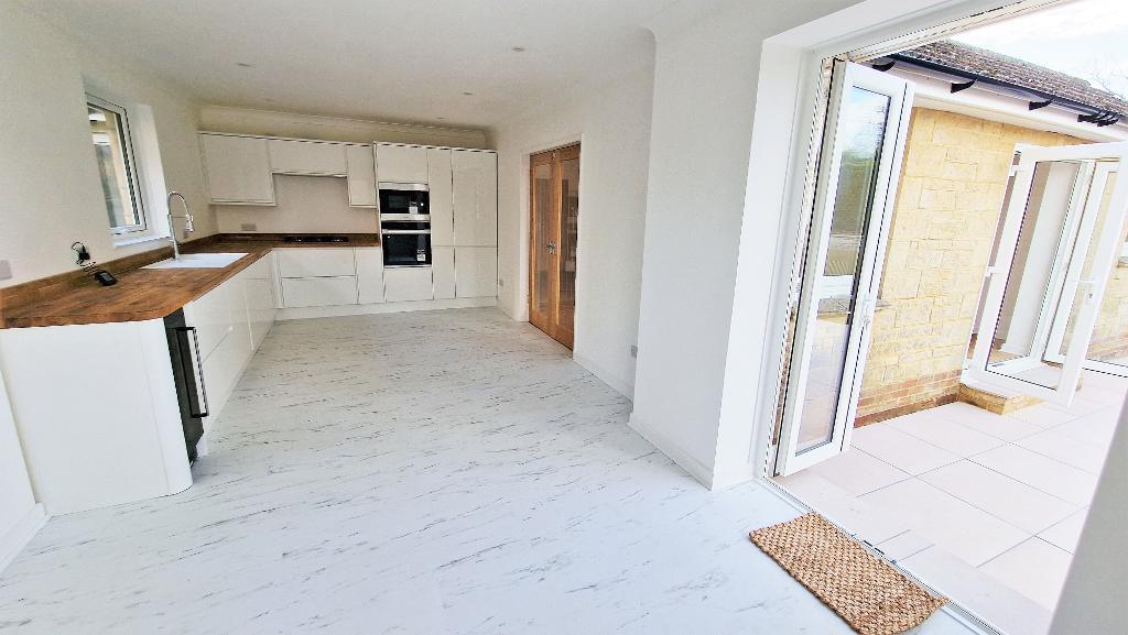 Offered for sale chain free, this spacious detached bungalow has undergone a full programme of renovation works. As well as a new modern kitchen and bathroom, these works include updated electrics, a new boiler and heating system, new windows, guttering, flooring and oak veneer doors, plus redecoration throughout. The bungalow now offers bright, airy and spacious accommodation which is perfect for all the needs of modern day living. A generous entrance hall gives access to an open plan living area which has French doors out to the garden and French doors through to the newly fitted kitchen and breakfast room. Further accommodation includes 4 double bedrooms, a study/5th bedroom, a utility room, a family bathroom and an en-suite shower room.