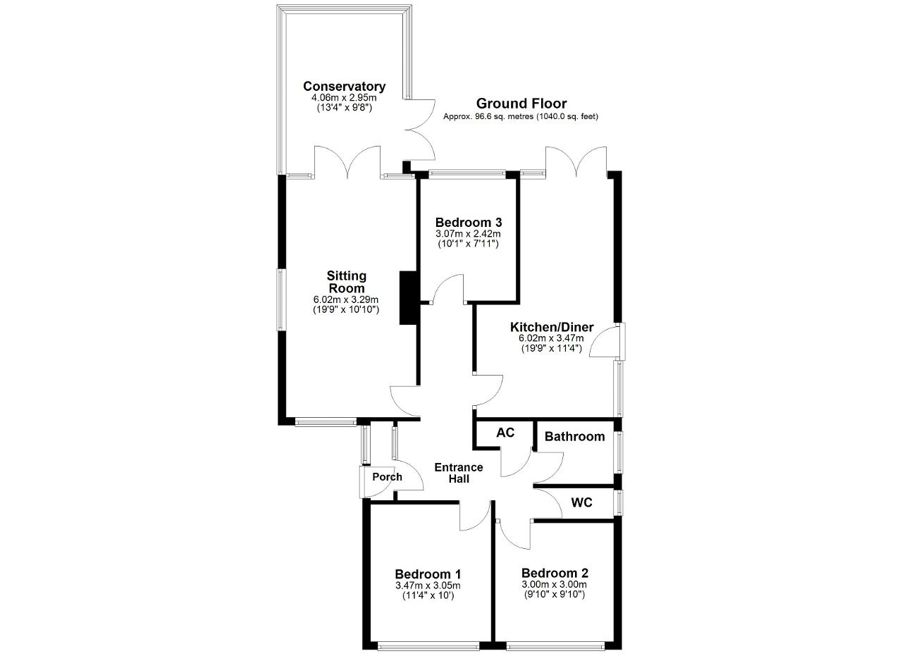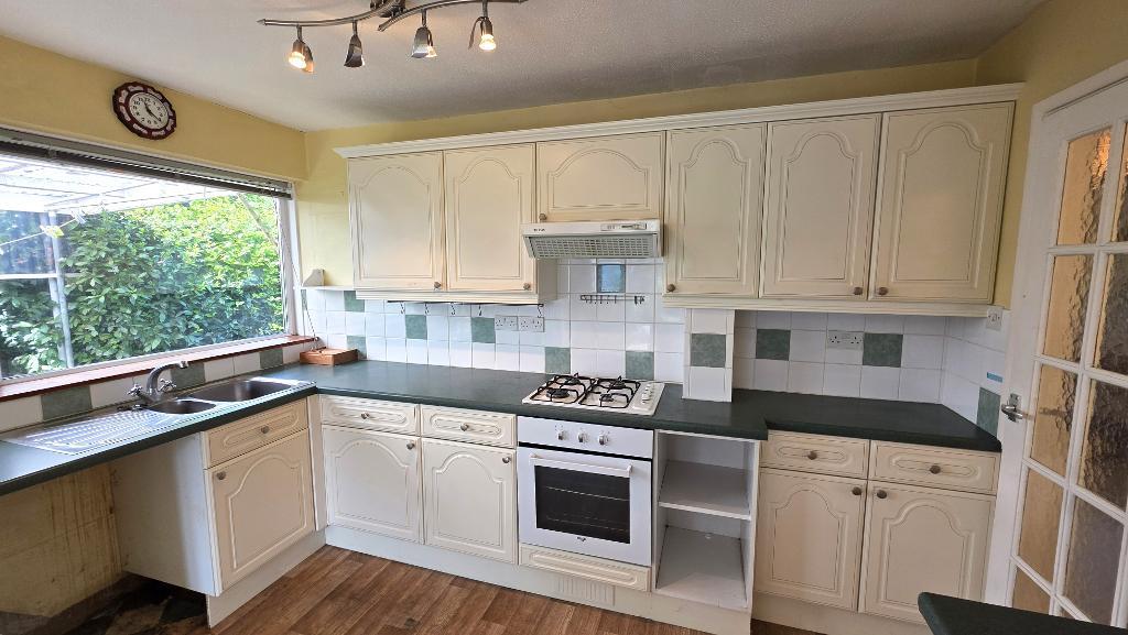 The bungalow offers well arranged accommodation comprising entrance hall, a triple aspect sitting room which leads into a conservatory, a bright open plan kitchen and dining room which opens into the garden, 3 double bedrooms, a bathroom and a separate WC.