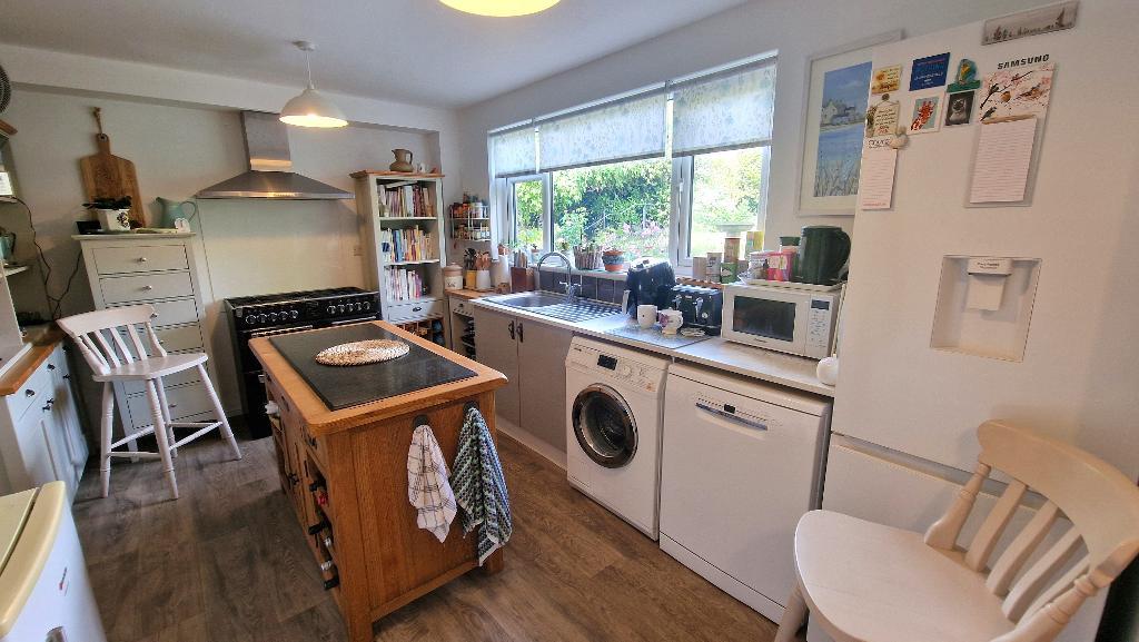 Kitchen - 9' 6'' x 17' 10'' (2.9m x 5.44m) Fitted with a central island, floor units with work surfaces over, an inset sink unit and plumbing for a dishwasher and a washing machine under. Large built in cupboards, a further walk-in storage cupboard and a walk-in larder. Space for a range style cooker and space for a fridge freezer. Double glazed window to the rear and a door giving access to the garden. Wall mounted gas boiler. Vinyl flooring.