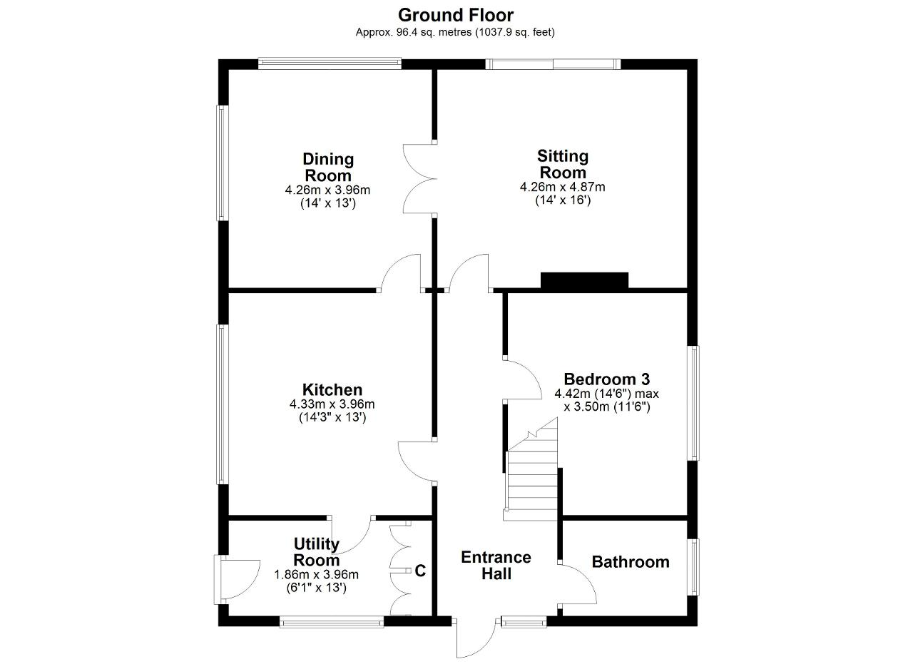 Bedroom 3 - 14' 6'' x 11' 5'' (4.42m x 3.5m) A double bedroom which could also be used a study. Double glazed window to the side. Radiator and fitted carpet.
