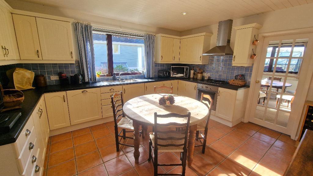 Kitchen Breakfast Room - 14' 2'' x 12' 11'' (4.33m x 3.96m) Fitted with a range of wall and floor units with work surfaces over, an inset sink unit and tiled surrounds. Windows to the side and rear. Built in gas hob with an electric oven under and a cooker hood over. Integrated fridge and dishwasher. Double glazed window to the side. Radiator and tiled flooring. Glazed door to: