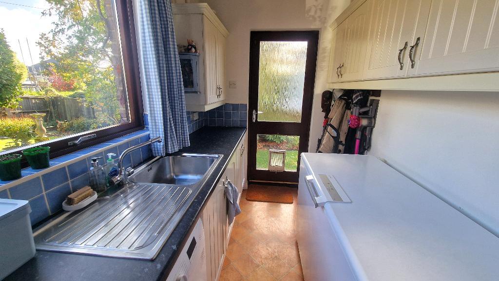 Utility Room - 6' 1'' x 12' 11'' (1.86m x 3.96m) Fitted with wall and floor units with work surfaces over, an inset sink unit and tiled surrounds. Built in floor to ceiling height cupboards. Plumbing for a washing machine and space for a freezer. Double glazed window to the front and door to the side giving access to the garden. Space for coats and shoes. Vinyl flooring.