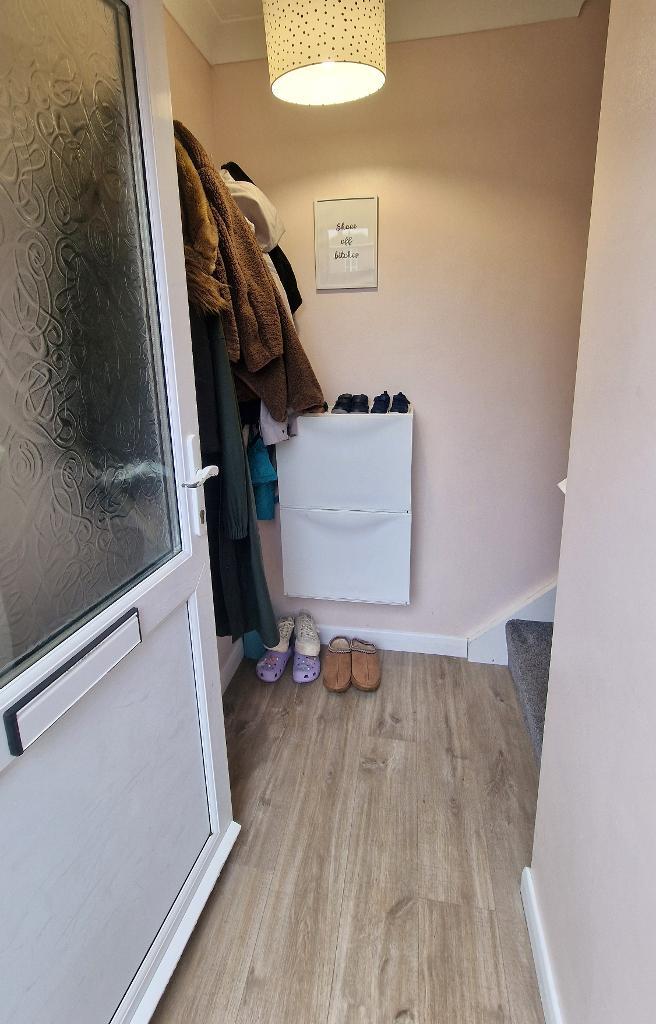 Entrance Hall - A double glazed front door gives access to a private entrance hall which has space for storing coats and shoes, carpeted stairs to the first floor and wood effect flooring.