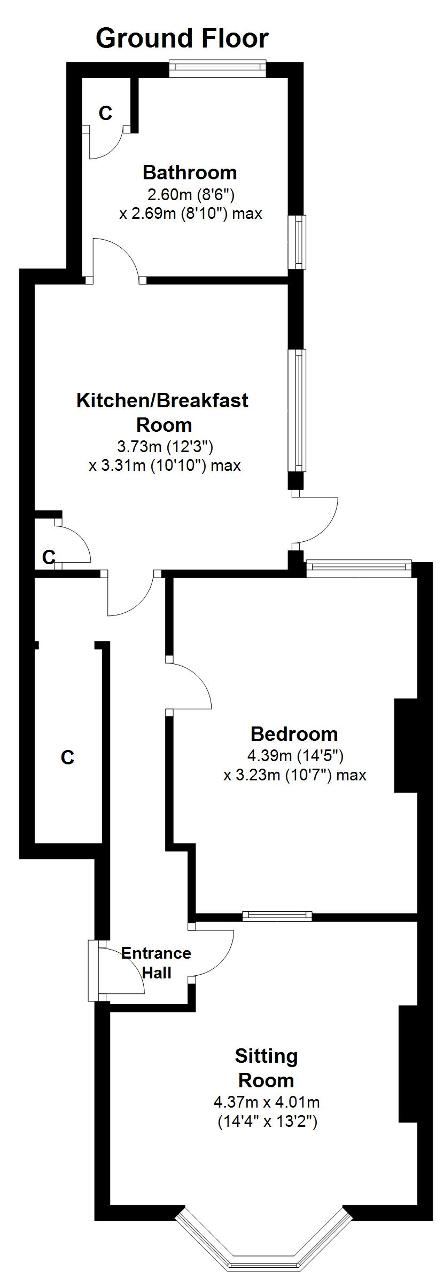 Bedroom - 14' 4'' x 10' 7'' (4.39m x 3.23m) A double room with a double glazed window overlooking the courtyard. Built in mirrored wardrobes. Fitted carpet, radiator.