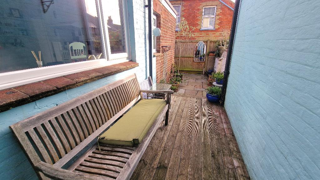Outside - A decked seating area leads out from the kitchen and on to the courtyard. Gated rear access leading on to Mill Lane. Fenced and gated area for bin storage.