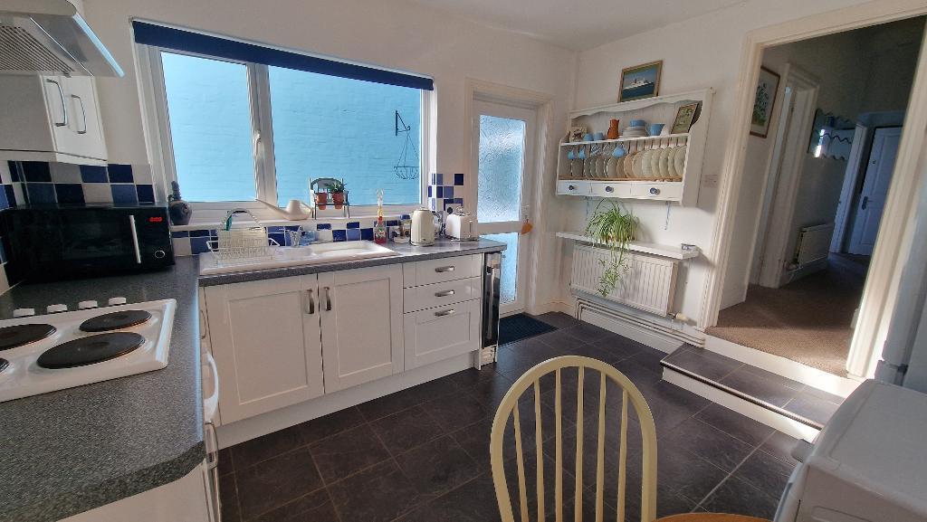 Kitchen Breakfast Room - 12' 2'' x 10' 10'' (3.73m x 3.31m) Fitted with a range of wall and floor units with work surfaces over, tiled surrounds and an inset sink unit. Built in electric oven and hob with a cooker hood over. Fitted wine fridge and space for a fridge freezer. Double glazed window to the side and door to the courtyard garden. Space for dining table and chairs. Tiled flooring, radiator.