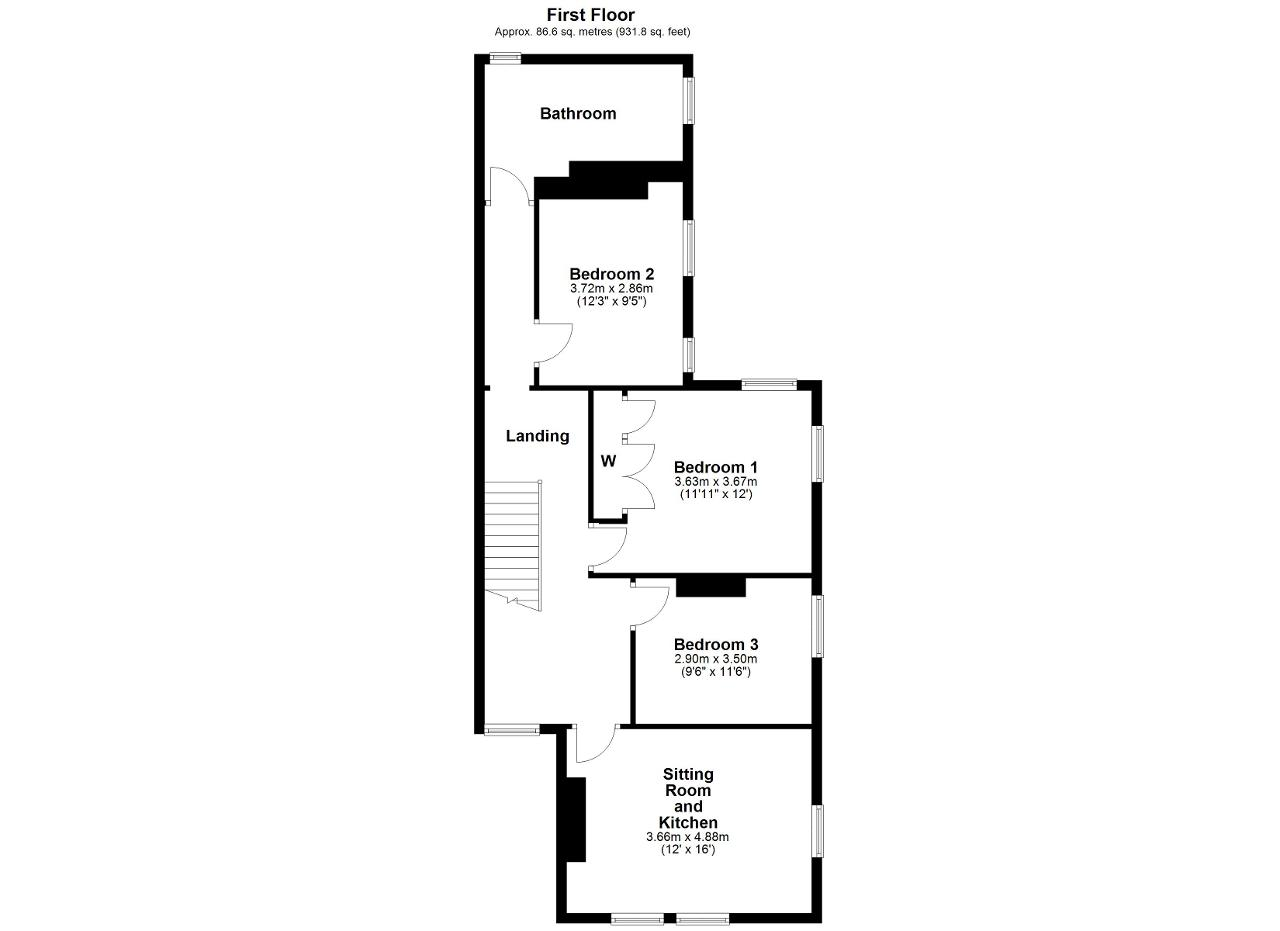 Bedroom 2 - 12' 2'' x 9' 4'' (3.72m x 2.86m) A double bedroom with 2 double glazed sash windows to the side. Radiator and fitted carpet.