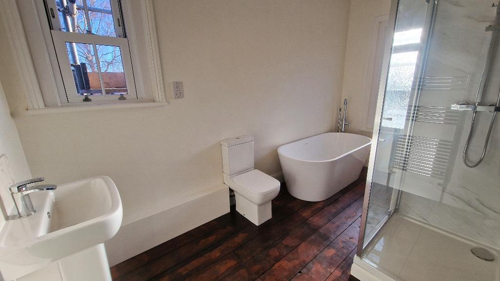 Bathroom - Fitted with a freestanding tub style bath, a double sized shower cubicle fitted with a thermostatic shower, a wash basin and a WC. Double glazed sash window to the rear and a double glazed window to the side. Heated towel rail, shaver point, panelled walls and stripped and varnished floorboards. Glowworm gas boiler. Access to the loft space.