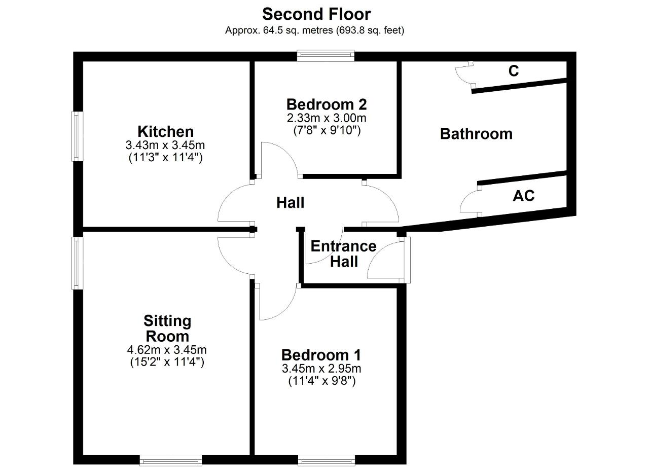 Positioned on the second floor, the apartment benefits from a dual aspect and far reaching views of the local countryside. The well arranged accommodation comprises entrance hall with storage space for coats and shoes, a dual aspect sitting room, a kitchen diner with space for a dining table and chairs, 2 double bedrooms and a good sized bathroom.