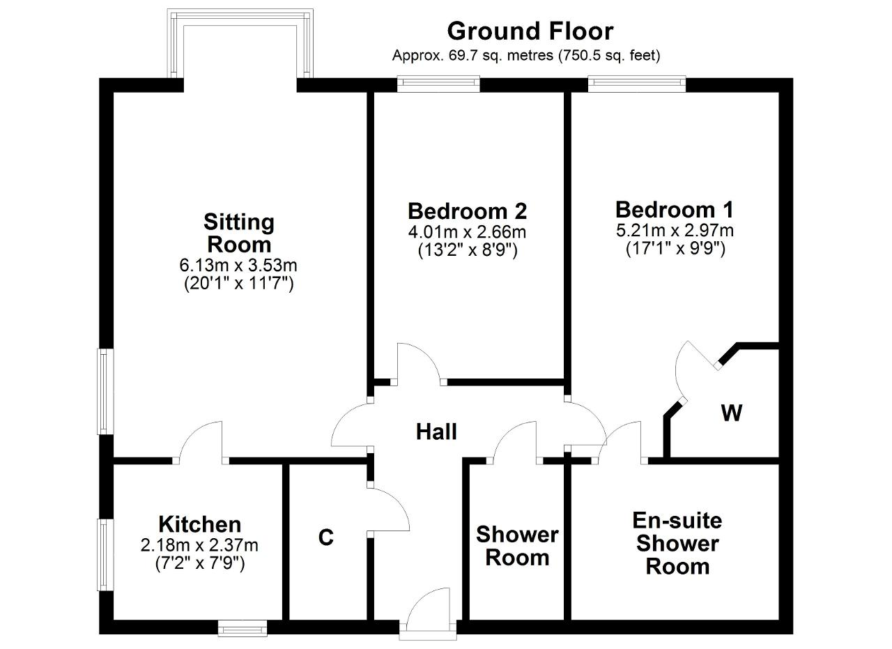 Sitting Room - 20' 1'' x 11' 6'' (6.13m x 3.53m) A bright dual aspect room with a triple glazed walk in bay window to the rear and a further window to the side, both offering views over the communal gardens. Electric fire with a wooden surround which provides a focal point to the room. TV point, 2 telephone points, fitted carpet and under floor heating. Door to: