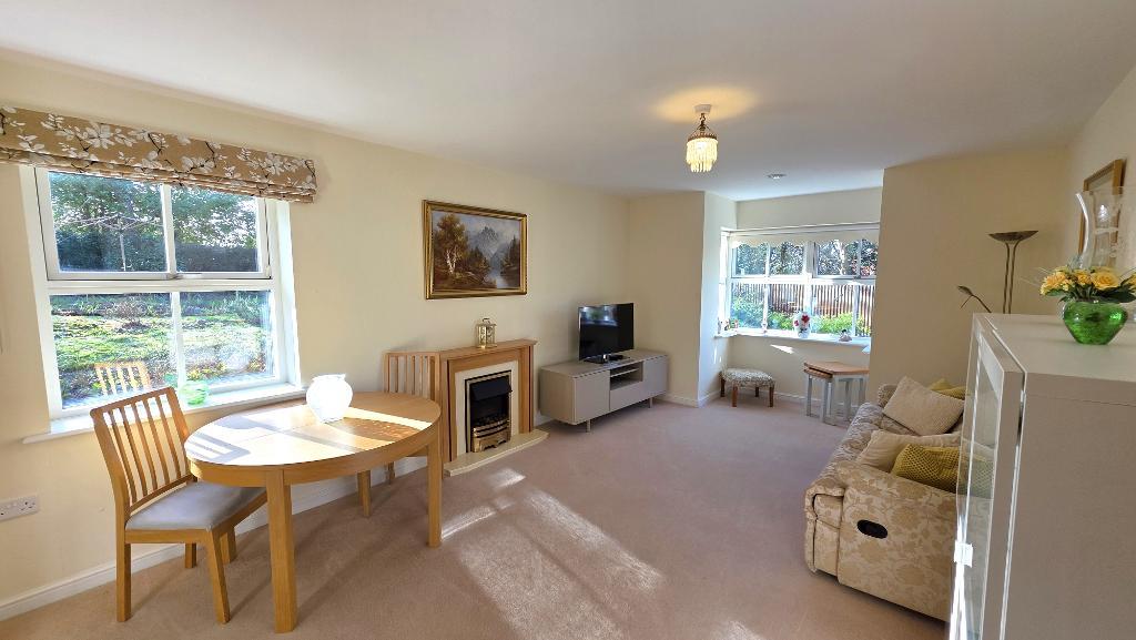 This spacious apartment is situated on the ground floor at the rear corner of the building, a level walk from the car park, the main entrance, communal lounge area and the laundry room. The apartment has been well looked after over the years and enjoys views over the communal gardens to both the side and rear. Accommodation comprises entrance hall, dual aspect sitting room with views over the gardens, fitted kitchen, 2 double bedrooms with an en-suite shower room and a walk-in wardrobe to the master bedroom, and an additional shower room. There is triple glazing and under floor heating throughout, plus the added security of emergency pull cords and an intercom system for peace of mind.