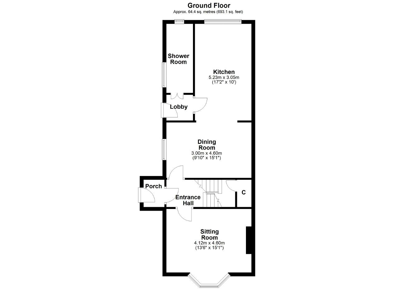 Sitting Room - 13' 6'' x 15' 1'' (4.12m x 4.6m) A front aspect room with a double glazed bay window overlooking the village green. Feature tiled fireplace with a wooden surround and tiled hearth, inset with a gas fire. Radiator and fitted carpet.