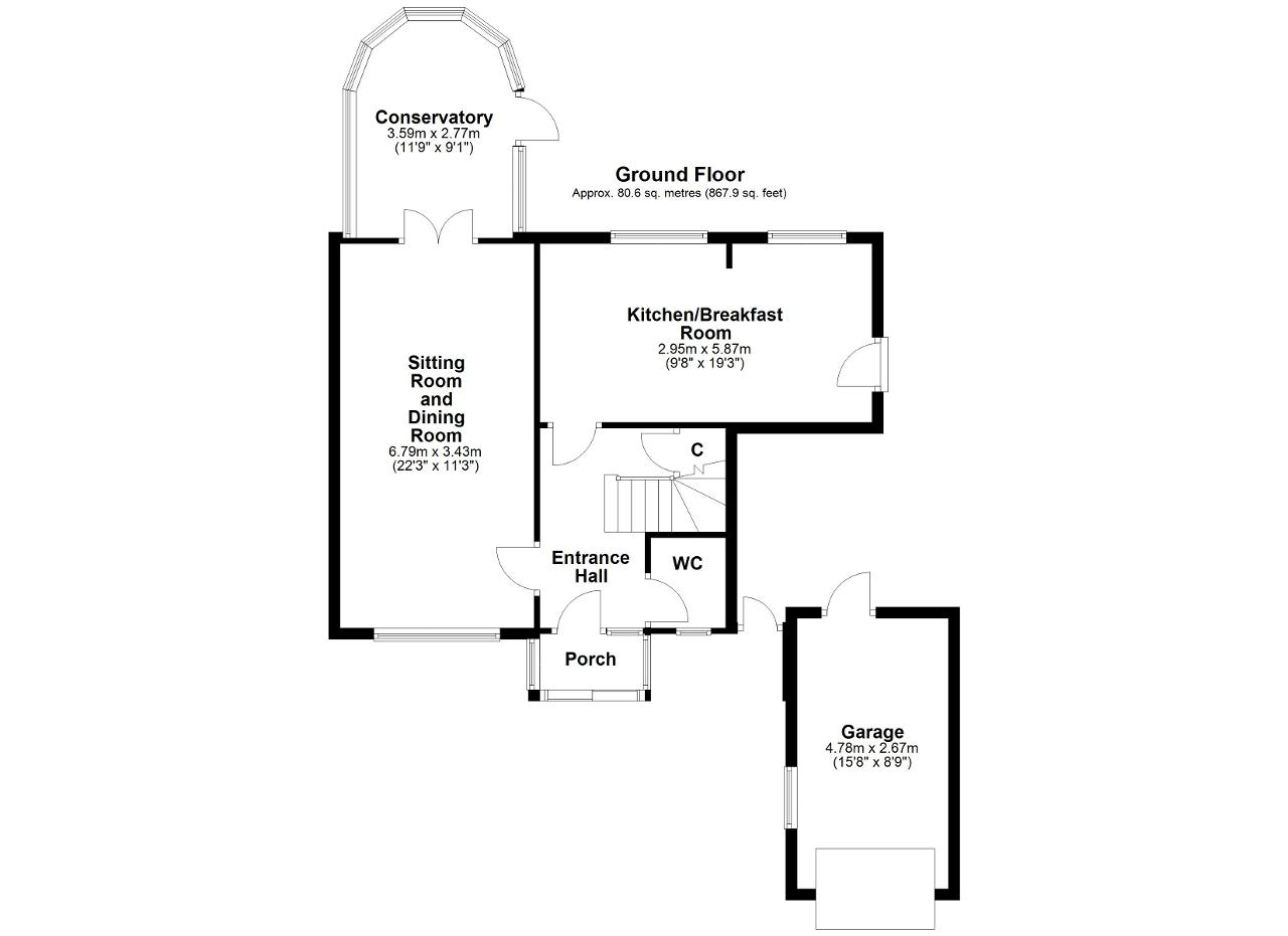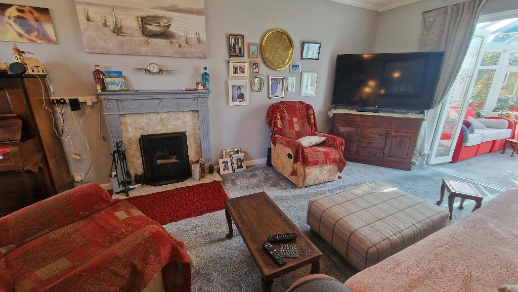 Sitting Room and Dining Room - 22' 3'' x 11' 3'' (6.79m x 3.43m) A spacious, dual aspect room with a double glazed window to the front and double glazed French doors leading into the conservatory. Feature open fireplace, TV point, 2 radiators and fitted carpet.