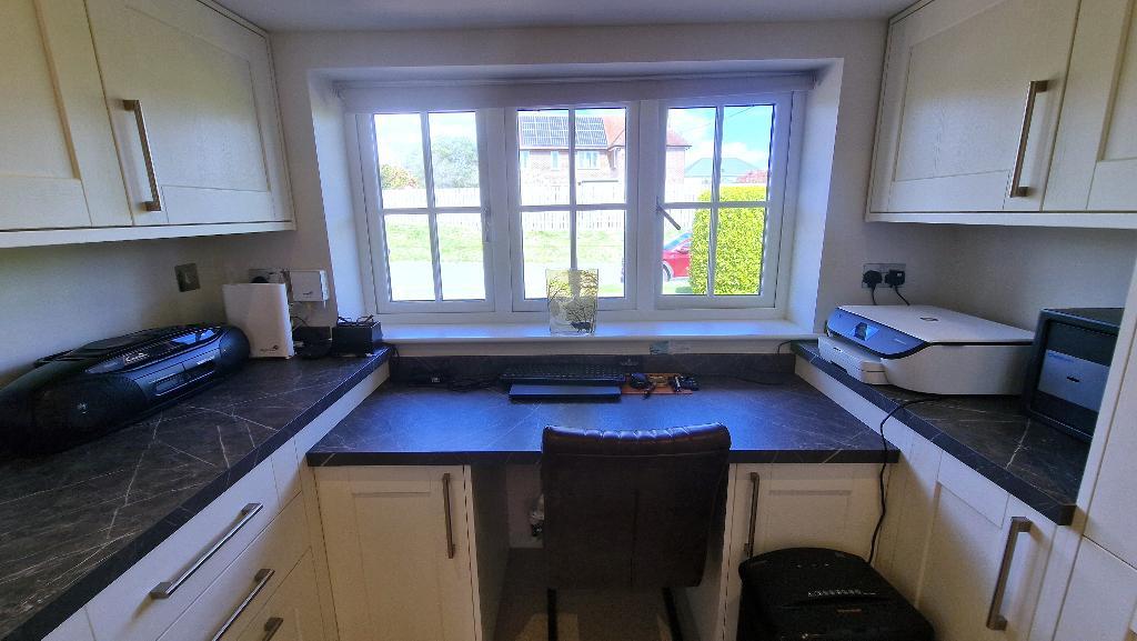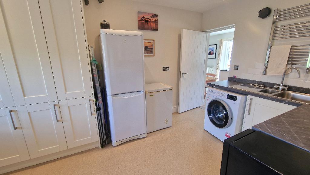 Utility Room / Office - 15' 6'' x 8' 9'' (4.74m x 2.68m) A useful additional room which accommodates both an office area and a utility area. Fitted with a range of wall and floor units with work surfaces over and matching upstands. Tall larder style cupboard. Plumbing for a washing machine, space for a fridge freezer and space for a wine fridge. Built in desk. Double glazed window to the front and door to the side. Extractor fan, heated towel rail and vinyl flooring.