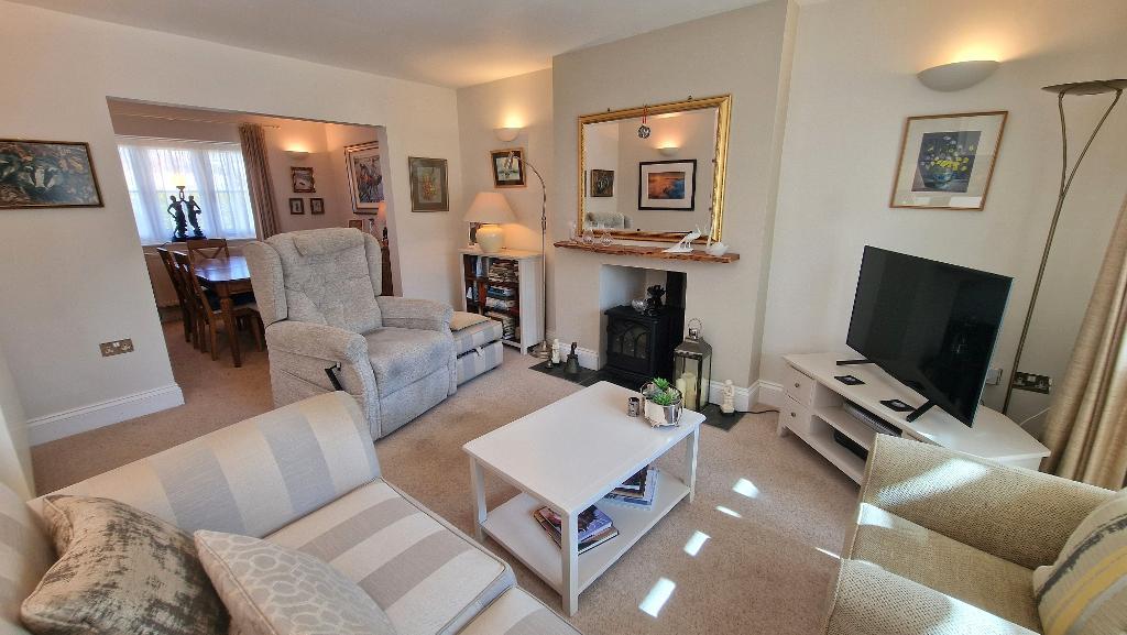 Sitting Room - 15' 2'' x 17' 4'' (4.64m x 5.29m) Feature fireplace with a slate hearth and a wooden mantlepiece. 2 pairs of double glazed French doors lead into the conservatory and provide a lot of natural light. TV point, telephone point, radiator and fitted carpet.