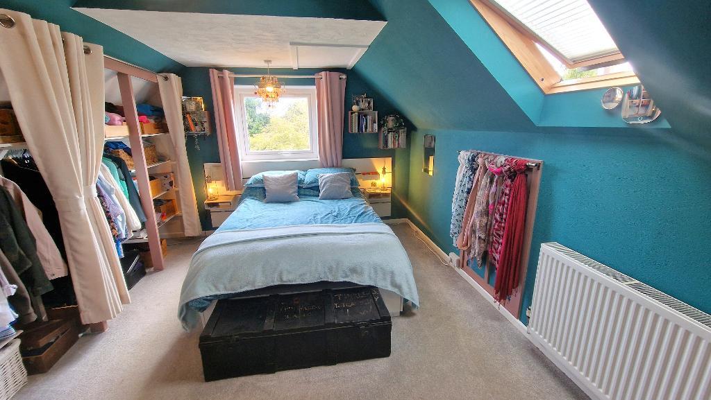Bedroom 2 - 12' 2'' x 11' 8'' (3.73m x 3.56m) A double bedroom with a double glazed window to the front and a Velux window to the side. Built in hanging space and shelving. Telephone point, radiator and wood effect flooring.