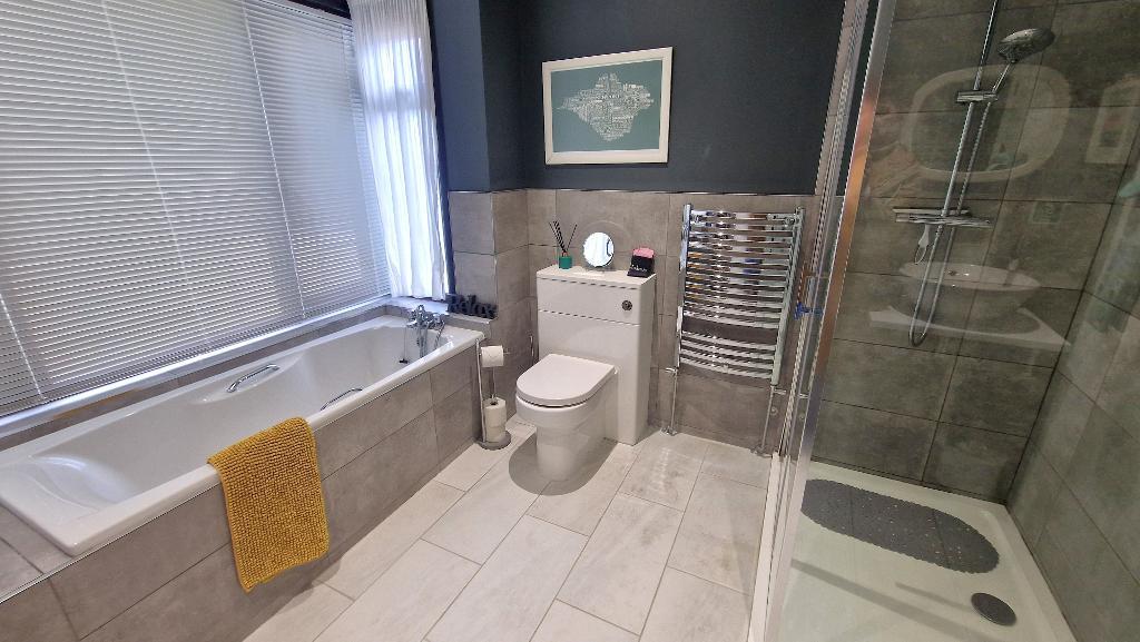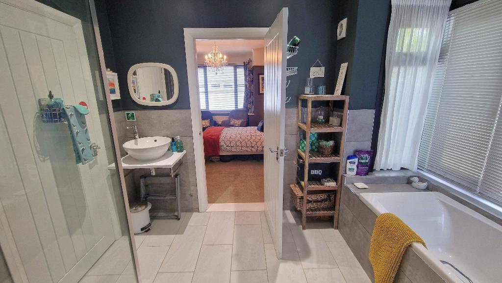 Bathroom - A "Jack and Jill" bathroom which can be accessed from bedroom 4 and the hallway. Fitted with a panelled bath, a double sized shower enclosure, a wash basin and a WC. Double glazed bay window to the side. Extractor fan, heated towel rail, tiled walls and tiled flooring.